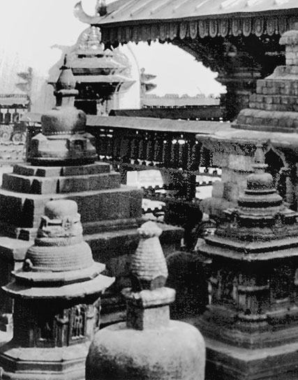 Еще и еще раз, задаваясь этим вопросом, я бродил вокруг главной ступы, натыкаясь на множество малых ступ и праздных туристов, фотографировавшихся на фоне этого творения непальского зодчества.