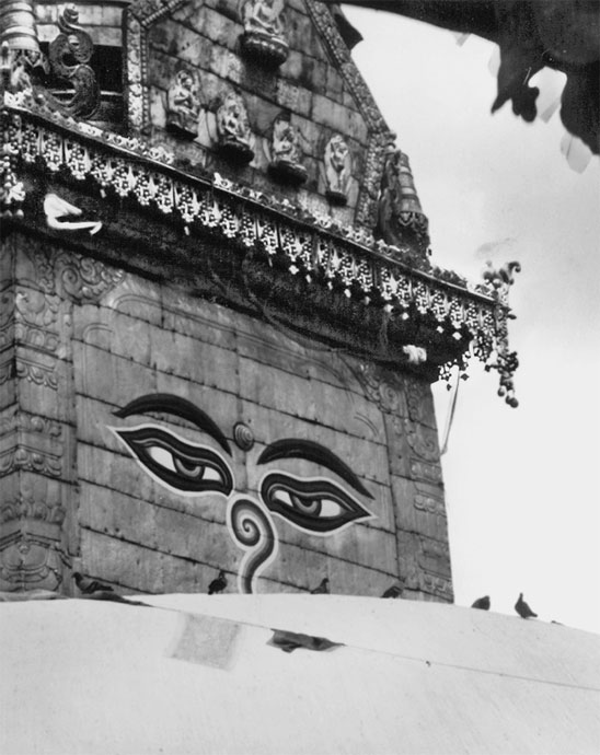 При взгляде на эту ступу было ясно, что глаза, изображенные на ней, смотрят на четыре стороны света.