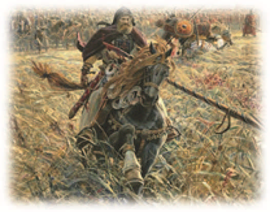 Благословением своимОн разгонял беду, как дым,Туман над полем, в граде смогРазгоняет ветерок.Но тем оно лишь помогало,Кто верил в Божие начало:В душу добрую оноТогда ложилось, как зерноЛожится борозды на дно,Принося заветный плодВ этот иль ближайший год…Он душу князю укрепилИ, опору в нем найдя,Князь в той битве победил,Возвестив: Взошла Заря!Родиону Ослябе и Александру Пересвету