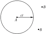Изложим простейшее, но, как выяснится позже, не вполне адекватное рассмотрение вопроса. Дано событие А. Рассмотрим в более поздний момент времени событие B, лежащее за пределами сферы радиуса ct с центром в точке А. Отсюда В не может проявлять каких-либо «признаков» А; А, соответственно, не может проявлять каких-либо «признаков» В. Итак, наш критерий рухнул. Средствами языка мы определили В как более позднее событие. Но вправе ли мы так поступать, если критерий не соблюдается ни в одном из направлений?