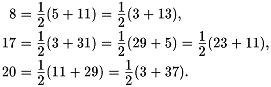 Как видите, обычно имеется более одного решения. Теорема носит имя Гольдбаха и считается истинной, хотя и не была доказана.