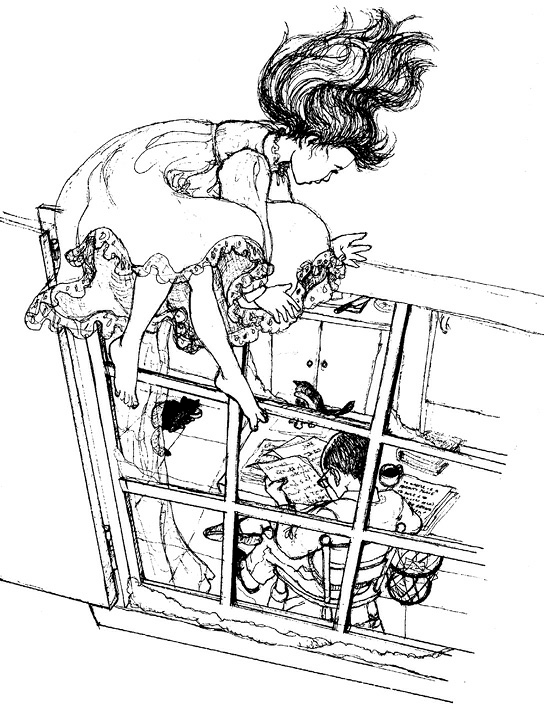 «Ну-ка, – задумалась она, – а куда бы мне теперь полететь?» Сара поднялась над своим городком, глядя, как гаснут огни в окнах, то тут, то там – семья за семьей, дом за домом укладывались спать. Начал идти легкий снег, и Сара восхитилась тому, как ей тепло и уютно, хотя она летает посреди ночи босиком и во фланелевой ночной рубашке. «И мне совсем не холодно».