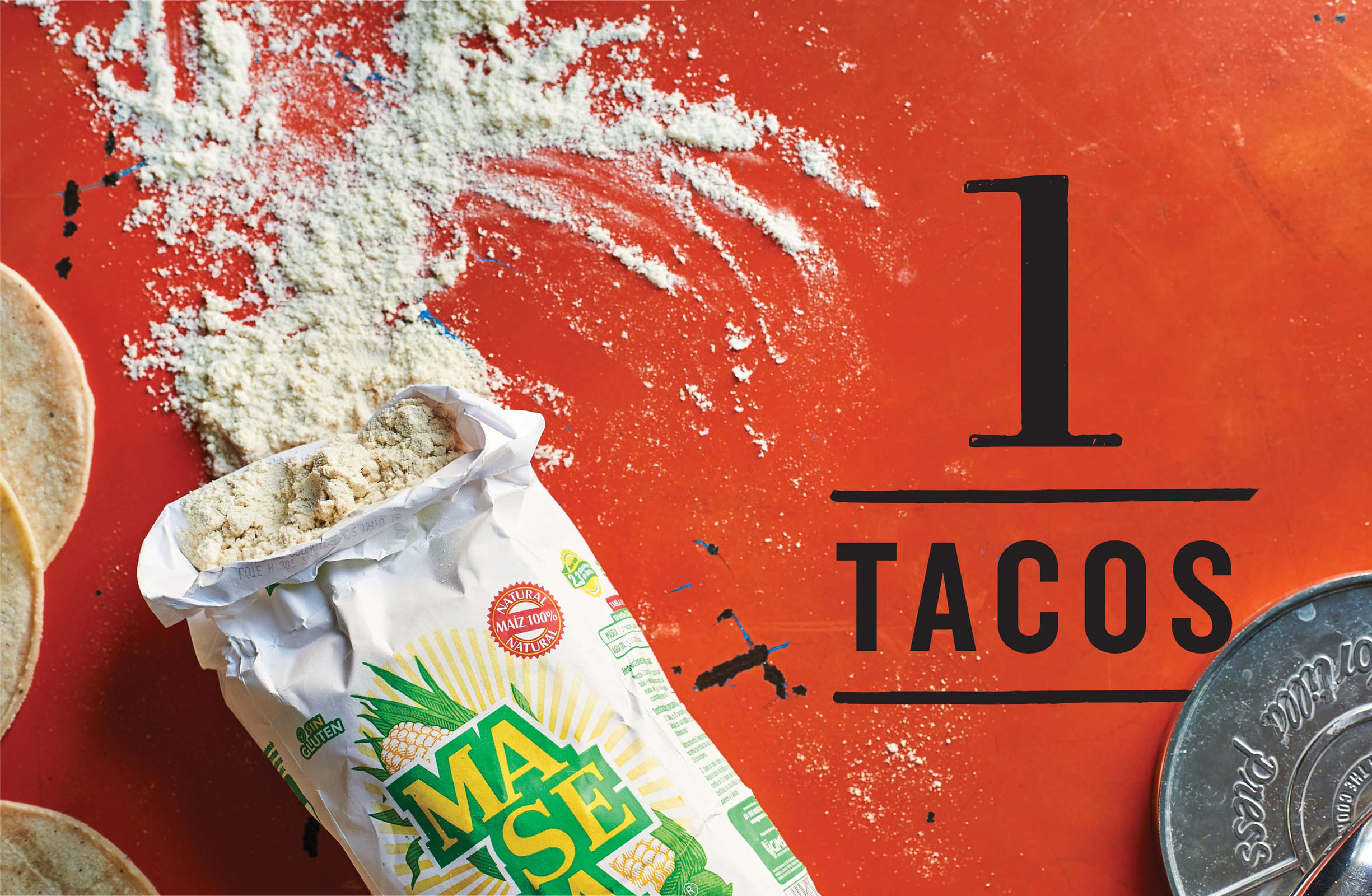 Making a corn tortilla can be a little tricky to master at first, but once you get into the swing of things you’ll be churning them out in no time. Masa harina, a fine flour made from corn (maize), is essential to this recipe. It’s available online and in specialist food shops. A good tip is to keep the flour in the freezer once opened, as it goes bad pretty quickly. It’s also easier to get a better-shaped tortilla if you use a tortilla press, which you can easily order online.