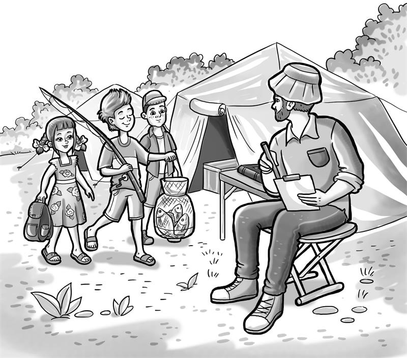 Среди деревьев замелькали разноцветные палатки. У одной из палаток, на складном стульчике, сидел человек с бородкой, в коричневой панаме и что-то записывал в блокнот.