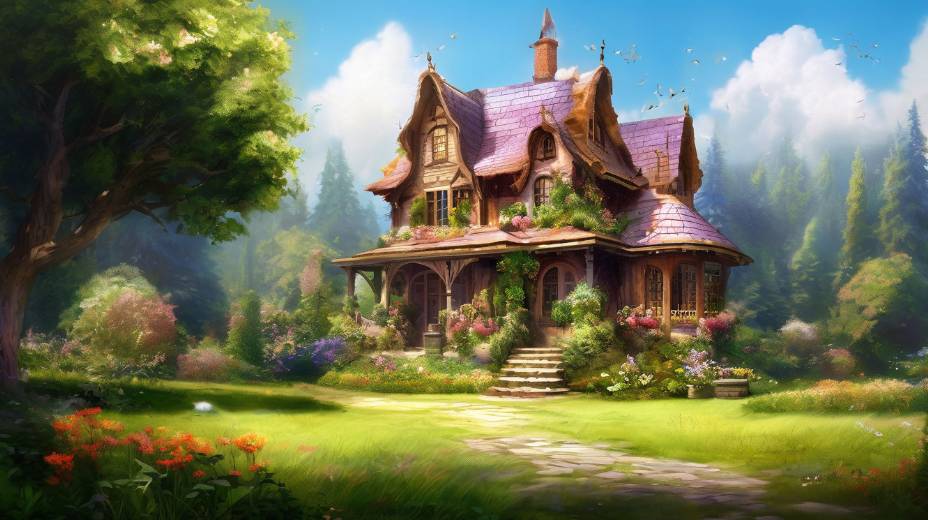Три друга-дракончика живут в маленьком уютном домике на опушке леса, рядом с огромной высокой горой.