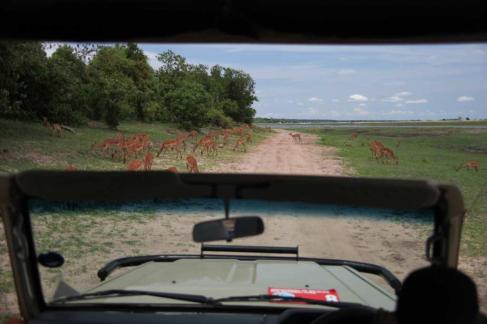 Антилопы не боятся людей и машин в Чобе, Ботсвана
