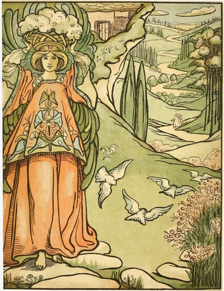 И Кит отвесил ей еще один поклон и снова зашагал прочь вниз по склону холма, насвистывая ту же мелодию, что и раньше; и все птицы небесные слетелись, когда услышали ее, и они полетели перед ним, чтобы показать ему дорогу, и он последовал за ними по лугам, через ручьи, и фруктовые сады, и кукурузные поля, пока они не привели его к стенам города короля Харлиберли. И они бы не оставили его тогда, если бы он не указал им самым вежливым образом, что, хотя с их стороны было очень любезно проделать с ним такой долгий путь, ему было бы немного неудобно путешествовать дальше с таким количеством спутников. И они снова улетели, и Кит вошел в город и подошел к воротам королевского дворца.