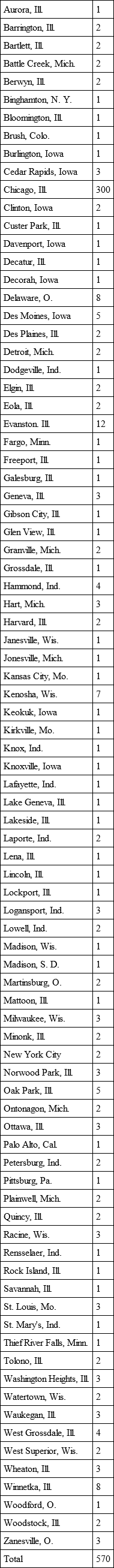 This remarkable table shows that victims of the fire were from thirteen states and eighty-six cities and towns.