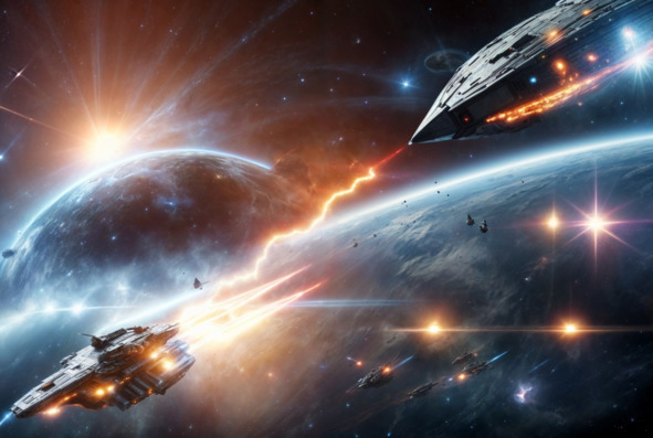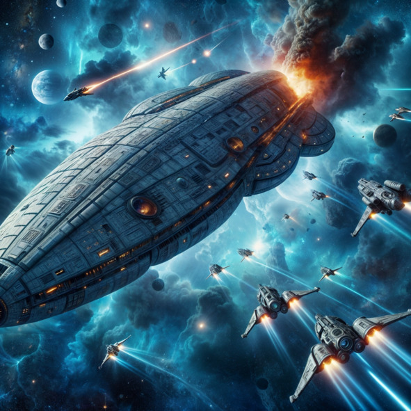 Под тяжёлым огнём вражеских судов, его истребители со всей мощью открыли ответный адский огонь из всех орудий. Плазменные заряды и ракеты полетели навстречу незваным гостям. Начиналось смертоносное сражение в открытом космосе.
