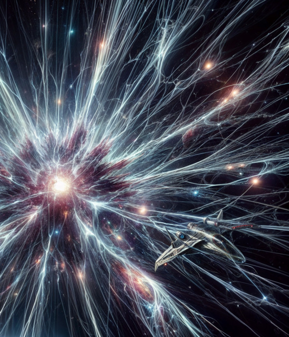 Корабли резко рванули вперёд, обходя грозную территорию гиганта. Колоссальные нитеобразные щупальца Вибронта вырывались из тумана во все стороны, прочесывая пространство в поисках добычи: