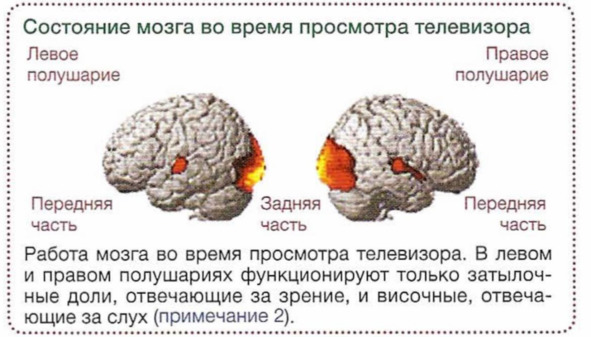 Хочется обратить внимание на низкую активность головного мозга во время просмотра телевизора. Надеюсь, это станет мощным толчком к размышлению о том, нужно ли ребёнку проводить время у телевизора. Многие мамы и учителя включают видео и занимаются своими делами. В таком случае мы видим, что результат от таких занятий будет незначительным. Альтернатива тому, при условии обучения онлайн, после видео или вовремя выполнение действий, желательно ограниченных по времени.