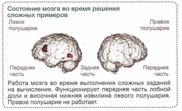 Как мы можем видеть самая высокая активность при быстром решении простых примеров. Учителя используют различные тренажеры в своей практике, где дети решают простые примеры на время – как показывает исследование, это очень полезные тренировки для активности головного мозга. Большой ошибкой будет выполнять эти же примеры не на время, а спокойно, что будет означать не тренировку, а «ходьба на месте», ведь ребята уже владеют ими и без скорости в таких примерах нет никакого смысла.