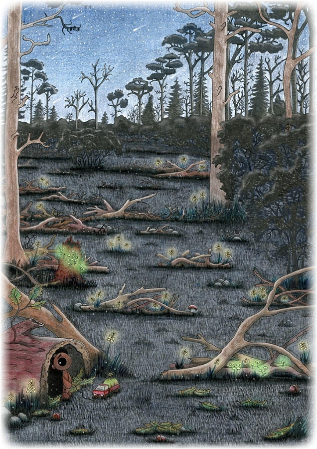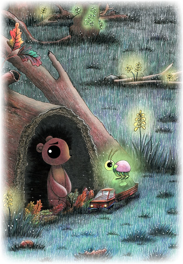 – Хи-хи! Спасибо тебе, но нет. Так высоко я не летаю. Я всего лишь Светлячок, один из Ночных Проводников этого леса. Мы помогаем заблудившимся в темноте найти дорогу домой. Пойдём!