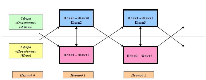 Они запоминаются в памяти, в следующем периоде рефлексии неосознанно исполняются и контролируются в подсознании, чтобы стать предметом объективации в очередном периоде рефлексии.