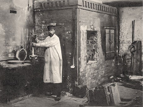 Бронзолитейная мастерская ЕХПШ. Литейщик П. И. Михайлов.