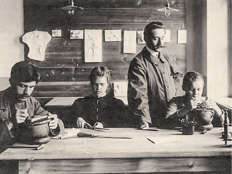 Академия художеств сыграла определенную роль в развитии интереса горожан к изобразительному искусству, в формировании пусть небольшой, но активной зрительской аудитории. На Сибирско-Уральской научно-промышленной выставке (1887) работал Художественный отдел, основой которого были экспонаты Передвижной выставки Императорской Академии художеств[23]. После закрытия экспозиции некоторые картины были подарены музею Уральского общества любителей естествознания и стали основой художественного отдела (открыт в 1901 г.). Инициативные горожане и немногочисленные местные художники (среди них – Николай Плюснин, Владимир Казанцев, Алексей Денисов-Уральский) ратовали за создание художественного учебного заведения, но в итоге были открыты лишь вечерние рисовальные классы при Екатеринбургском обществе любителей изящных искусств (основано в 1895 г.), которые не могли дать желающим серьезной академической подготовки. При слабо развитом художественном рынке и незначительной зрительской аудитории только декоративно-прикладное искусство могло стать локомотивом развития художественной жизни региона.