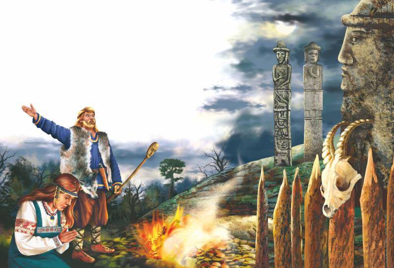 Легкость, с какой варяги взяли власть в землях славян, объясняется не только приглашением, но и сходством веры – и славяне, и варяги были язычниками-многобожниками. Они почитали духов воды, лесов, домовых, леших, имели обширные пантеоны «главных» и второстепенных богов и богинь. Один из самых почитаемых славянских богов, повелитель грома и молний Перун, походил на скандинавского верховного бога Тора, символы которого – молотки – археологи находят и в славянских погребениях. Поклонялись славяне Сварогу – хозяину Вселенной, богу солнца Дажьбогу и богу земли Сварожичу. Уважали они бога скота – Велеса и богиню рукоделия – Мокошь. Скульптурные изображения богов ставили на холмах, священные капища обносили высокой оградой. Боги славян были очень суровы, даже свирепы. Они требовали от людей почитания, частых подношений. Наверх, к богам, дары поднимались в виде дыма от сжигаемых жертвоприношений: еды, убитых животных и даже людей.