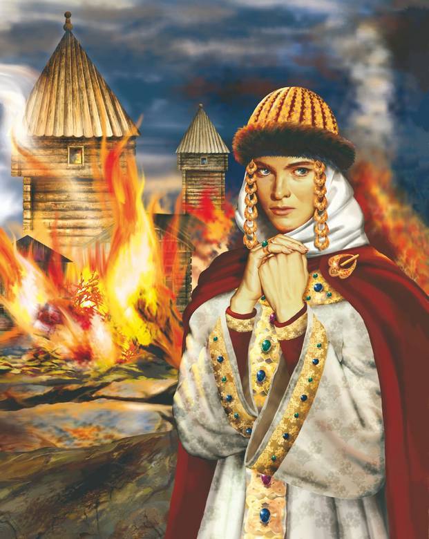 Преемник Олега Игорь (Ингвар) по прозвищу «Старый», сын Рюрика, правил 33 года. Он жил в Киеве, который стал для него родным домом. О личности Игоря мы знаем мало. Это был воин, суровый варяг, который почти непрерывно покорял племена славян, облагал их данью. Как и Олег, Игорь совершал набеги на Византию. В те времена в договоре с Византией появляется название страны русов – «Русская земля». Дома Игорь был вынужден отражать набеги кочевников – печенегов. С тех времен опасность нападения кочевников никогда не ослабевала. Русь была рыхлым, неустоявшимся государством, вытянувшимся на тысячу верст с севера на юг. Сила единой княжеской власти – вот что удерживало удаленные друг от друга земли. Каждую зиму, как только замерзали реки и болота, князь отправлялся в полюдье – объезжал свои земли, судил, разбирал споры, собирал дань («урок») и наказывал «отложившиеся» за лето племена. Во время полюдья 945 г. в земле древлян Игорю показалось, что дань древлян мала, и он вернулся за добавкой. Древляне возмутились этим беззаконием, схватили князя, привязали его за ноги к двум согнутым могучим деревьям и отпустили их. Так бесславно погиб Игорь.