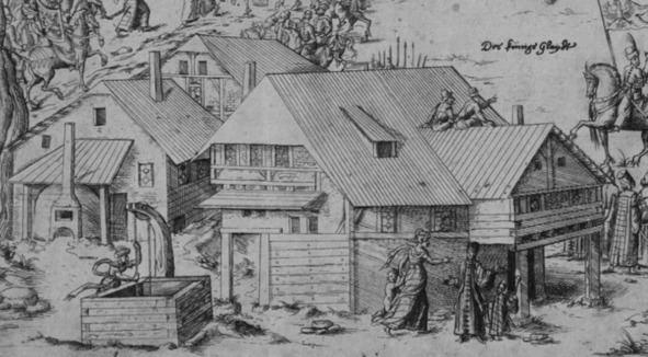 Фахвёрковые дома в Гродно. Гравюра Цюндта, 1568 год.