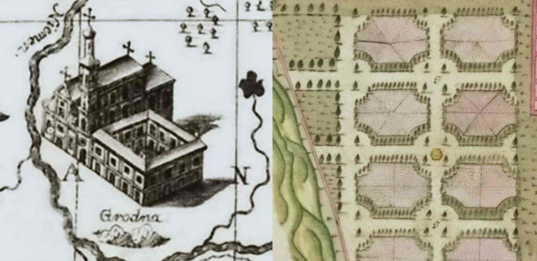 Костёл бернардинцев на плане XVIII века и бернардинский сад на плане 1804 года.