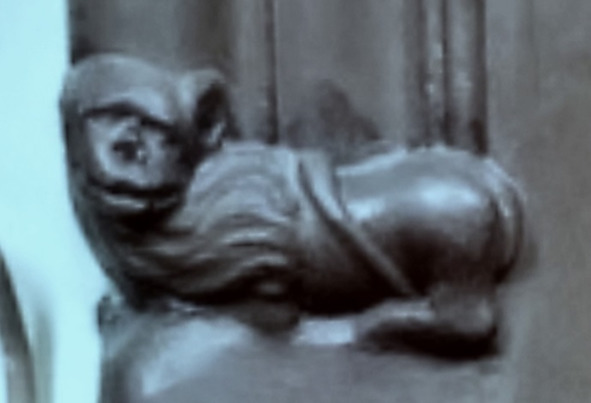 Один из скульптурных элементов убранства каплицы привлёк особое внимание Юзефа Иодковского. В основании южной арки находятся две скульптуры существ, смахивающих на львов. Их гротескный вид позволил создателю гродненского музея предположить более солидный, по сравнению с остальным убранством каплицы, возраст этих элементов. Историк высказал догадку о происхождении скульптур, отнеся их ко времени Александра Ягеллончика, то есть к XV веку!