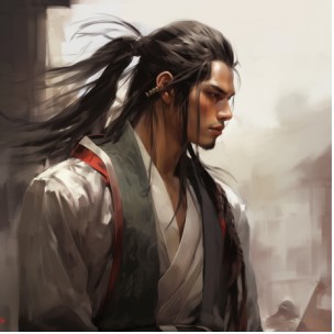 Стоящего напротив меня парня отличают тонкие черты лица с претензией на аристократизм, а также нос с горбинкой, доставшийся ему от матери. Вся его физиономия сейчас так и выражает презрение к окружающим и в особенности ко мне. Длинные чёрные волосы он зачёсывает назад и связывает в хвост атласной лентой. Естественно, когда не нужно работать в поле или лесу, можно и косу до пола отрастить. Сейчас, как и всегда, он одет в дорогие шёлковые одеяния с широкими рукавами. Их украшает искусная вышивка, подчёркивающая его высокое положение.