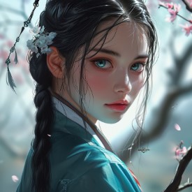 Внезапно со стороны школы доносится быстрый топот ног, и уже через десяток ударов сердца к нам подбегает совсем юная девушка. Она отличается редкой красотой, словно сошла со старинной гравюры. Изящные черты лица дополняет шелковистая чёрная коса. Глаза цвета лазури сияют умом и добротой. Лин двигается тихо и плавно, как река, что течёт по зелёной равнине. Чаще всего её голос звучит мягко, но в моменты открытых конфликтов в нём прорывается внутренняя сила. Она – человек с покладистым и незлобивым характером, поэтому нередко помогает жителям деревни в их хлопотах.