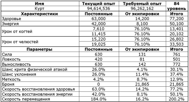 В итоге его здоровье скакнуло до 77 тысяч. Когти начали дамажить в среднем на 16 тысяч, а челюсти – на 30. При этом то самое Куртово Мерцание теперь тратило 750 единиц энергии и позволяло прыгать на 37.5 метров.