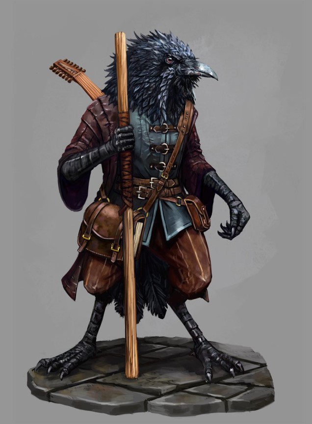 Пока я обхаживал своего внутреннего гурмана, на смену акробатам на сцену бочком протиснулось низенькое существо – метра полтора в прыжке, одетое в тёмно-бурое тряпье самого жалкого вида. Одну руку оно прятало под балахоном, а мятый капюшон скрывал лицо. Заинтересовавшись, я активировал расовую способность зрения в темноте. Полумрак отступил, открывая мне вид на чёрный клюв и такие же перья, покрывавшие существо буквально с головой. Виднеющуюся руку венчали острые коготки. Из-под нижней кромки тряпья торчали по-птичьи выгибающиеся назад колени и щуплые чешуйчатые лапы, перебинтованные на уровне голени. Четыре длинных когтистых пальца на ногах, один из которых смотрел назад, всё это до жути напоминало мне лапу какой-нибудь курицы переростка.