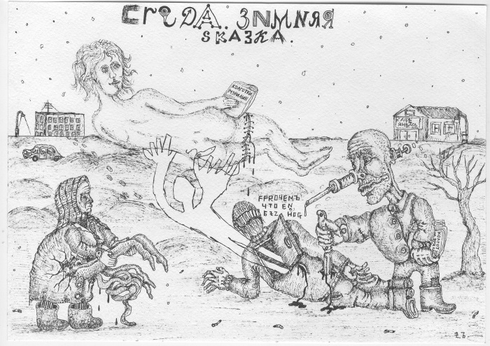 Однажды в субботу, в день отдохновения, Федор шел по рынку и увидел, как старуха в гнилом тряпье торгует китайскими колготками на вес. Они были спутаны, как внутренности, их заметал снег.