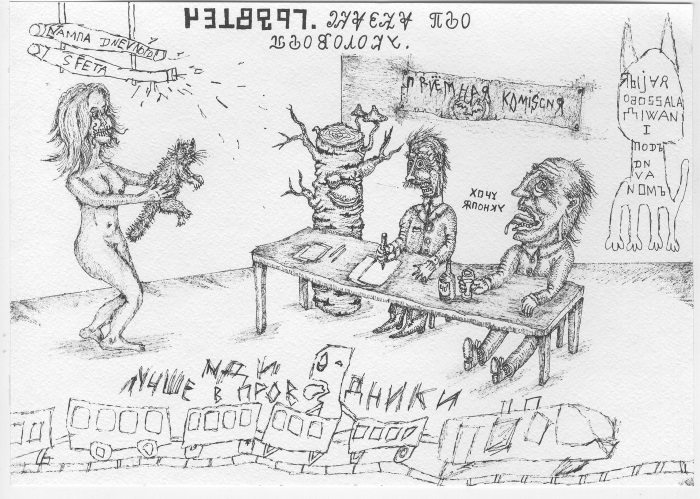 Однажды Рита поцеловала кошек сомкнутыми губами и уехала в город побольше. Лишь прикосновение к кошке прекрасно, а люди и предметы – отвратительны. Поезд шел ночь и ночь, и вонял вечностью. Проводники играли в карты на удар по морде, и до утра в тамбуре стояла кровь. На нижней полке дышала старуха, которая помнила войну, но не помнила какую. Рита вышла курить, а за ней выполз проводник почти без лица.