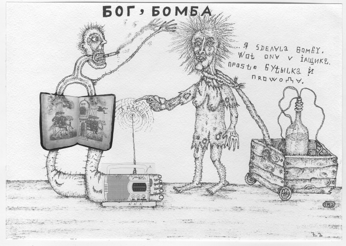 – А дальше я сделала бомбу. Вот она в ящике. Просто бутылка и провода. Тот старик с мертвого завода сказал: разбей, и все погибнет. Вот она, бомба. Разобью, и все. Всех. А мы выживем. Кто чего-то стоит. Ты сорвал яблоко – живи. Ты собрал меду – живи. Ты принес тарелку – живи. Ты умеешь только врать и насиловать – сдохни, тварь, сдохни! А мы останемся. Только хорошие. Только мы. Будем скрещиваться друг с другом. Будем плодить только хороших. Только нас. Мы инвалиды. Гордиться нечем. Бежать некуда. Но вот моя бомба. Вот моя бомба. Вот она в ящике. Просто бутылка и провода. Тот старик с мертвого завода сказал: разбей, и все погибнет. Он продал ее за бутылку, блок сигарет и поцелуй в губы. Там химическое производство. Было. Раньше. Теперь ничего нет.