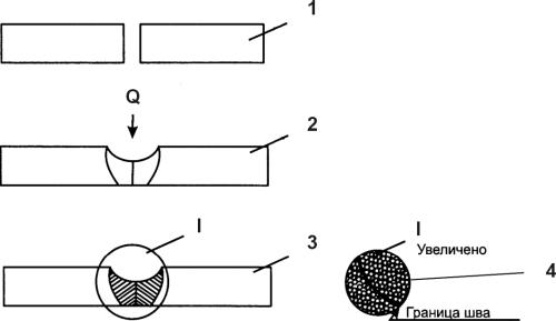 Рис. 1. Схема стадий образования соединения сваркой плавлением: