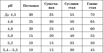 В табл. 2 приведены нормы внесения извести в зависимости от механического состава почвы.