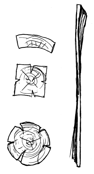 Коробление может быть продольным и поперечным. Поперечное выражается в изменении формы сечения заготовки. Причина – разница в усушке по радиальному и тангенциальному направлениям.