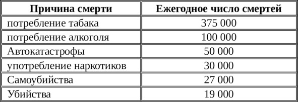 Все вышесказанное в полной мере относится и к табаку: «Сигареты считаются как минимум полулегальным и вызывающим рак наркотиком» [13]. И, хуже того, по мнению бывшего Главного врача США С. Эверетта Купа: «Никотин – это самый „затягивающий“ наркотик в нашем обществе» [14].