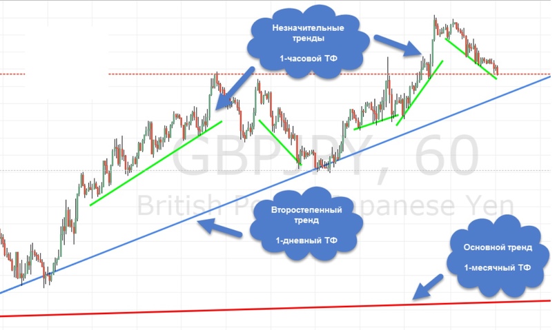 Рынок движется в направлении основного тренда. Второстепенный же тренд, как правило, идет против основного тренда либо как коррекция к нему.