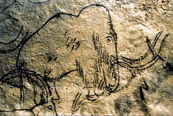 Здесь мы видим мамонта, огромное животное, наподобие обросшего шерстью слона с огромными бивнями, в окружении других животных. Животные разных видов часто изображались рядом.