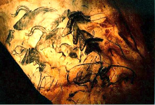 Животные, изображенные на стенах палеолитических пещер, – это буйволы, дикие лошади, олени, носороги, лани, реже – мамонты, исчезнувшие ныне.