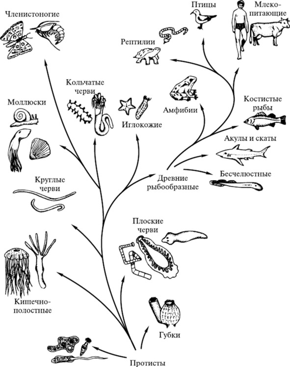 Эволюционное древо, как его видел Ламарк (это рисунок из его книги. У Ламарка «древо» перевернуто вверх корнями)…