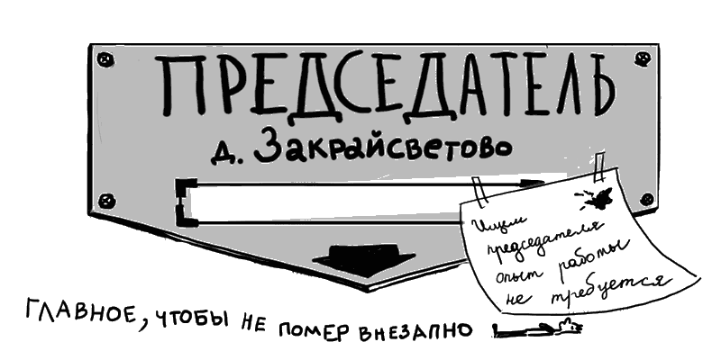 – Так не хочет никто там работать. Ну нет, так нет. Мое дело предложить, как говорится. Просто уже второй месяц не можем себе председателя найти.