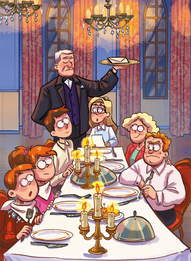 Обед был накрыт в большой столовой с высокими витражными окнами. Дворецкий Гантер прислуживал за столом, ему помогали две молодые горничные. Помимо Князевых, Софии и Адалинды к обеду спустился брат Софии. Этот Хилберт близнецам сразу не понравился. Пухлый коротышка, абсолютно рыжий, с угреватым лицом, он хмуро и подозрительно разглядывал гостей.