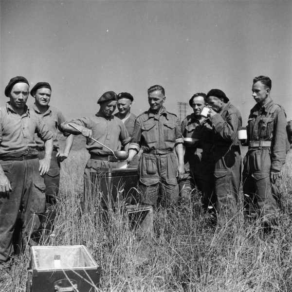 Солдаты 1-й польской бронетанковой дивизии пьют чай в районе сосредоточения неподалеку от Кана 7 августа 1944 года, за день до своего боевого крещения.