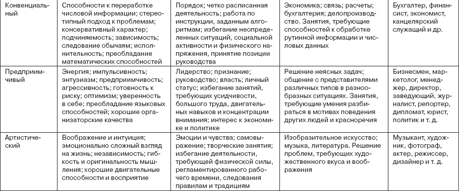Одной из наиболее известных психологических теорий профессионального выбора, объединяющей личностные черты с предпочтением рода занятий, является концепция Дж. Холланда (Holland, 1963). Он попытался объяснить, почему разные типы людей предпочитают разные типы профессиональных занятий.