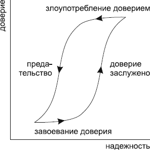 Нестик Т. А., 2005. С. 35Третья – изменчивость, динамичность доверия. Оно может возрастать, если объект доверия выполняет свои обещания, но может и ослабевать или исчезать вообще в случае обмана, предательства (рис. 1.2).