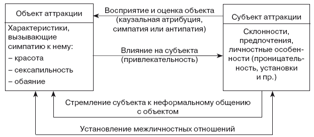 Надо отметить, что все выделяемые стороны аттракции – как оценка и характеристика объекта (эмоциональная и когнитивная), как положительная установка на объект, вызывающая реакцию притяжения и приближения к объекту, – находятся в динамическом взаимодействии и, строго говоря, их нельзя рассматривать независимо друг от друга.