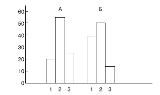 Рис. 2.1. Соотношение «отзывчивых» (1), «индифферентных» (2) и «уклоняющихся» (3) среди мальчиков (А) и девочек (Б) в % к общему числу респондентов каждого пола