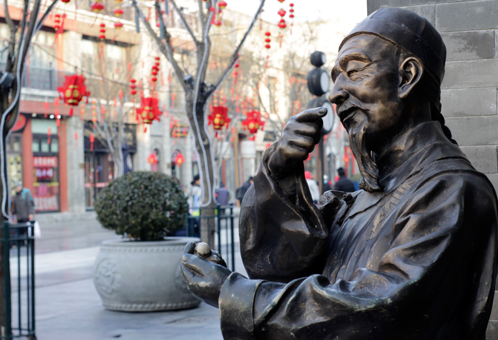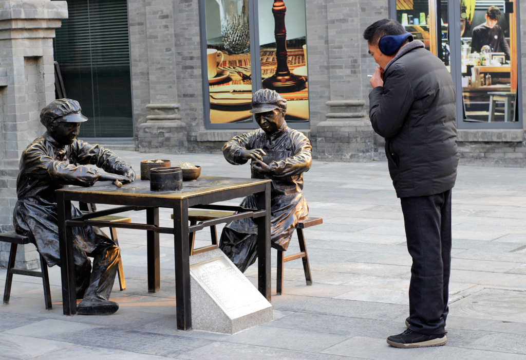 Улетал я из промозгшей Москвы, а попал в солнечный Пекин. Я шёл по улице и вертел головой по сторонам: мне всё было интересно. И пустой город (потом дошло – Новый год же у них, праздники), и люди, и машины, электроскутеры, лавки, зазывалы в кафешки, контактные скульптуры. И много-много красных государственных флагов – они украшали почти каждый дом.