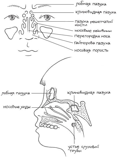 Людвиг ВитгенштейнИтак, мы уже знакомы с тем, как нос устроен, и с тем, как он работает. Становится понятным, что, коль скоро нос столь тесно контактирует с полостью уха, с околоносовыми пазухами, с носоглоткой и т. д. – так не получится говорить о носе и не упоминать эпизодически о других органах, которые и анатомически, и физиологически с носом очень тесно связаны.