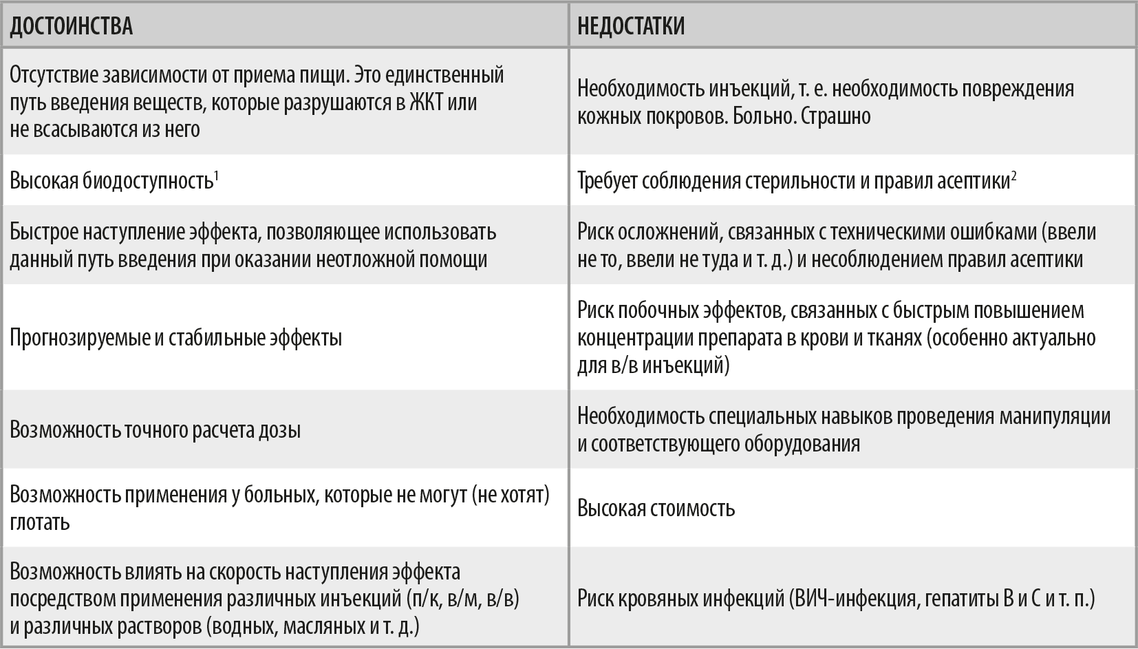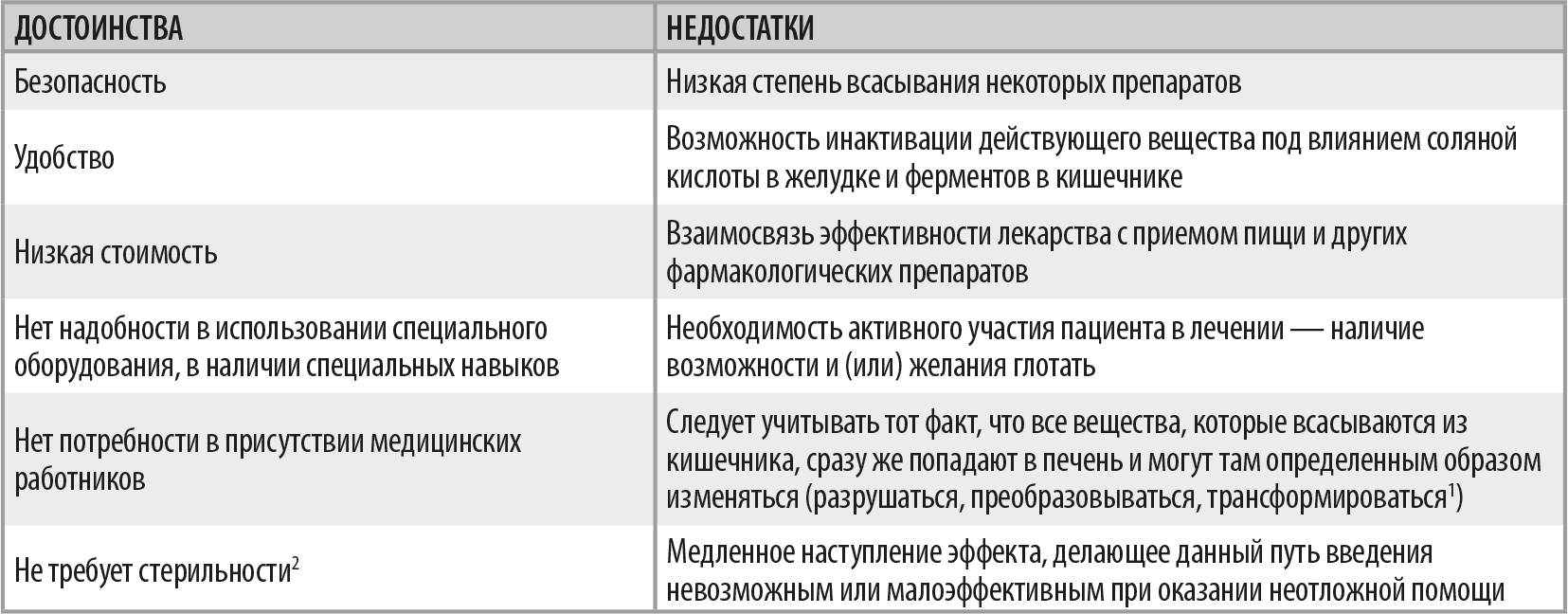 Существует два принципиальных момента, определяющих отношение к достоинствам и недостаткам этого пути введения лекарств.